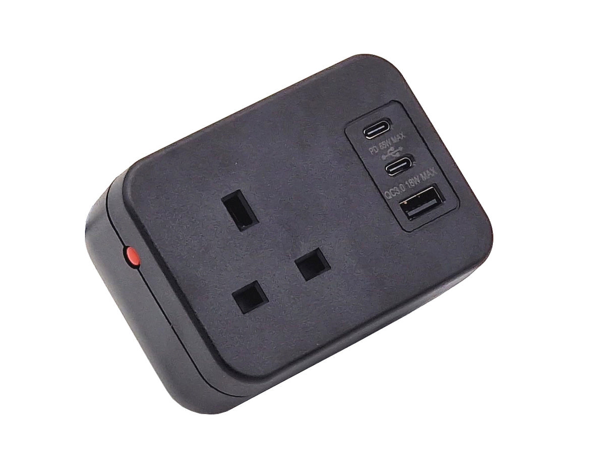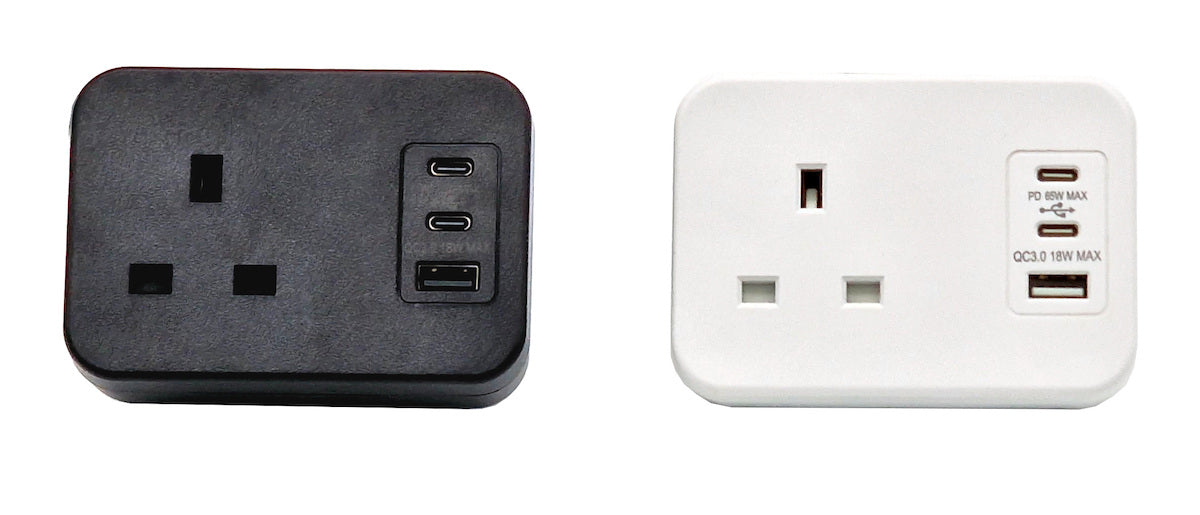 Although the smallest of footprint the ICON.ONE boosts a UK socket with 3A thermal fuse, a USB A QC (Quick Charge) and a dual USB PD (Power Delivery) chargers, available in black or white with a desk clamp.